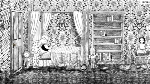 2、游戏黑白的手绘画风看着很简单,但在细节上的刻画配上恐怖的音效能够营造出让人毛骨悚然的氛围。