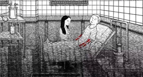 当他出现的时候我脑洞突然打开,我所想到了不禁让自己打了个冷颤。我想到的是Abby就是被Thomas所杀掉的。后来我还是推翻了我的想法,因为结局一的关系,我还是认为Thomas的女儿不是Thomas亲手杀死的。这个图可能是他愤怒的感情表现,流着血泪。