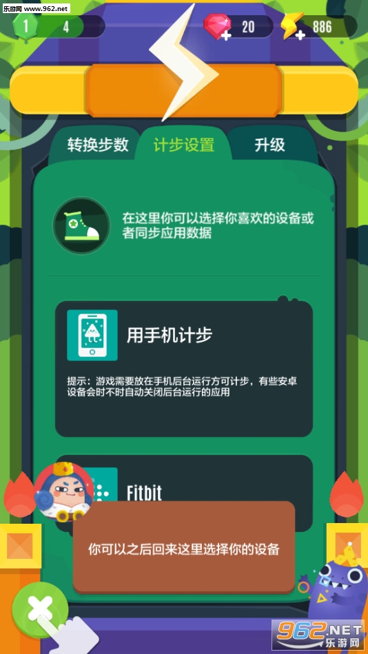 你还能连接电话或者Fitbit来转换运动步数为能量,帮助你加速游戏进程,为你的健康加分!