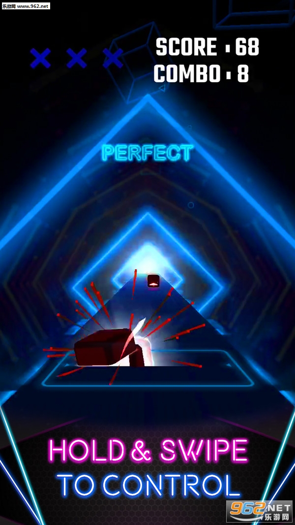 一款非常有趣的音乐节奏游戏,游戏中玩家将按照方块标记的方向来滑动屏幕,跟随着音乐的节奏不断的滑动手指,游戏中有着非常不错的视觉表现,让你体验炫酷的光效,游戏的玩法简单容易上手,推荐给喜欢休闲游戏的玩家。
