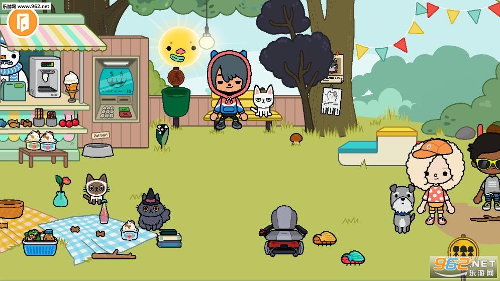 宠物公园:与宠物享受美妙的户外时光!在小河里洗个澡、在草地上来顿野餐、玩一场游戏或探索隐藏的洞穴。还可以建立一条敏捷赛道来训练宠物并测试技能。到处戳戳探索树木 - 还可能找到壮大宠物家族的惊喜!