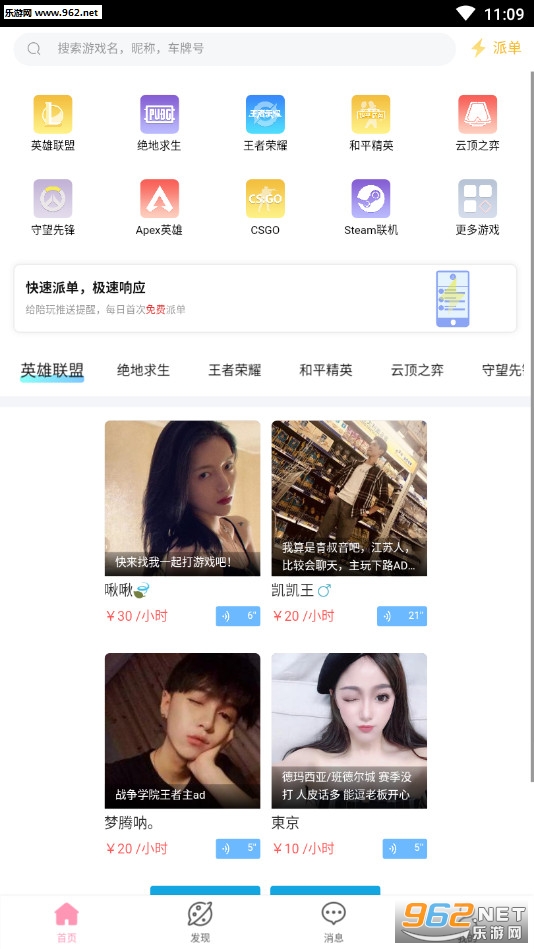 游戏教学和陪玩的平台,覆盖众多的游戏,小伙伴们可以在软件中寻找自己想要的大神人物来带你上分,可以语音聊天,喜欢的朋友可以下载试试。
