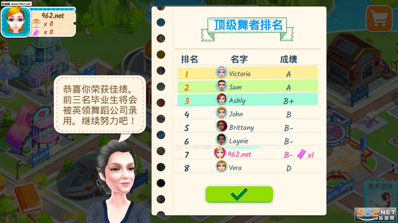 通过完成任务,进入更高等级的舞蹈课