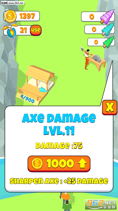 3、超级魔性的闯关小游戏,没有任何的难度,轻轻松松就能砍倒多种树木。