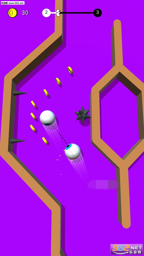 《眼睛冲冲冲游戏》是一款有趣的敏捷躲避闯关游戏,游戏中玩家要控制两颗眼珠去冒险,这两颗眼球是连接在一起的,做什么都是一起行动的,游戏中你要移动一颗眼球,带动另一颗眼球,小心翼翼的躲避尖刺,炸弹这些危险的陷阱,慢慢的来到终点。