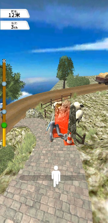 操作人物下山,撞击对手,并躲避障碍,直到重点。难度偏高