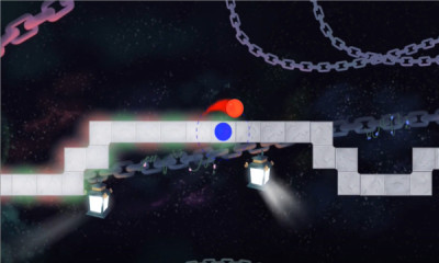 2、游戏一开始会有两个球在格子组成的面上互相转圈,每点一下小球就会在方格里前进一步。方向由点击时小球在的格子为准。