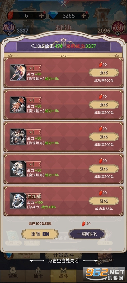 3、通过收集不同的道具来合成稀有道具和装备。