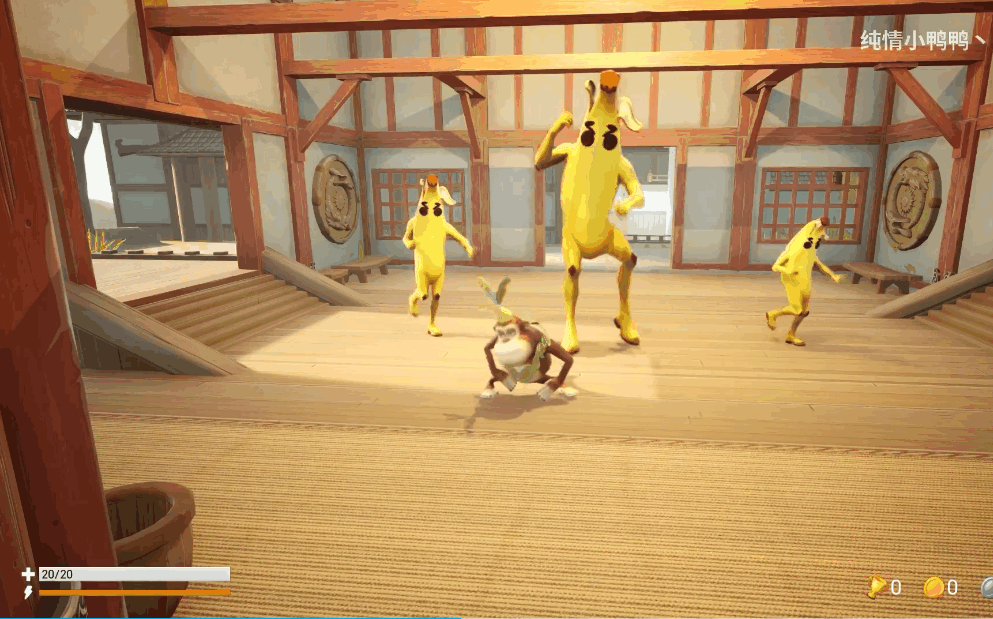2、通过操作吉吉国王获取香蕉道具就能变身为猴哥,之后便可以使用棍子进行战斗;