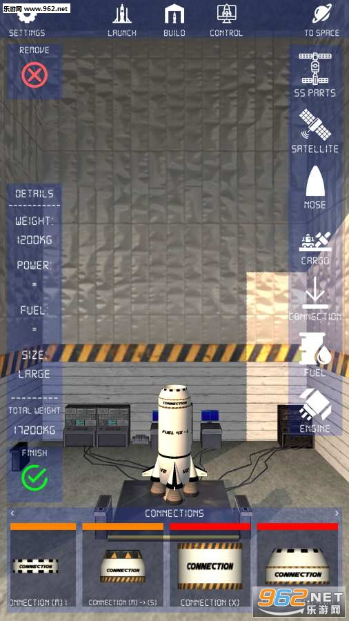 2、游戏的第一部分,玩家必须建造自己的火箭并将其发射到发射区域的地方;