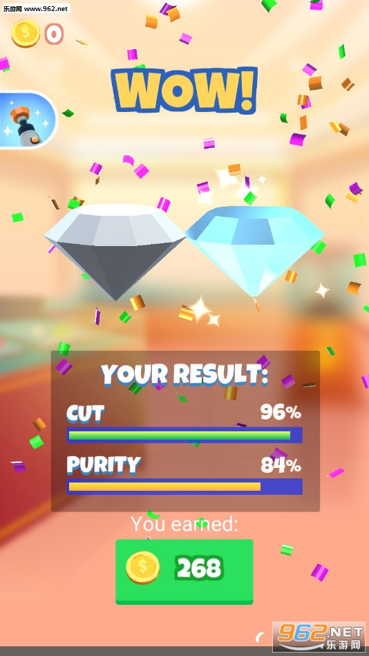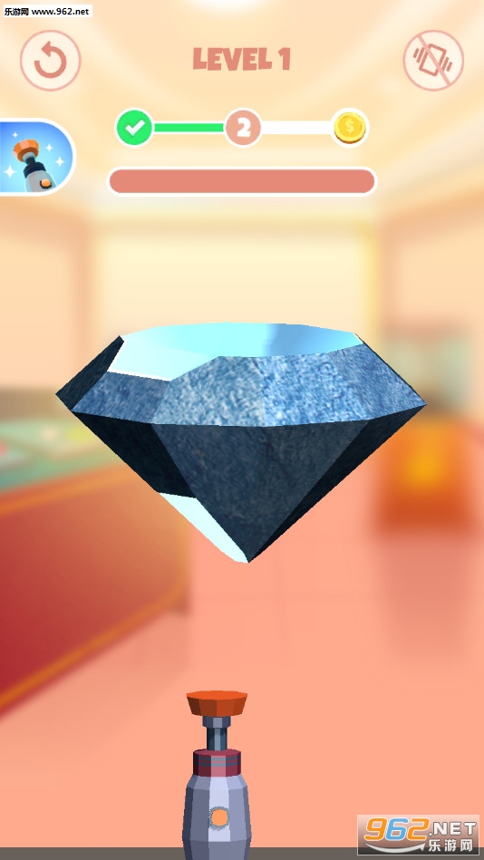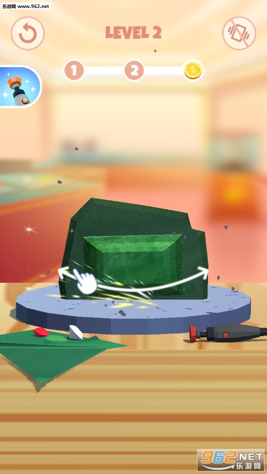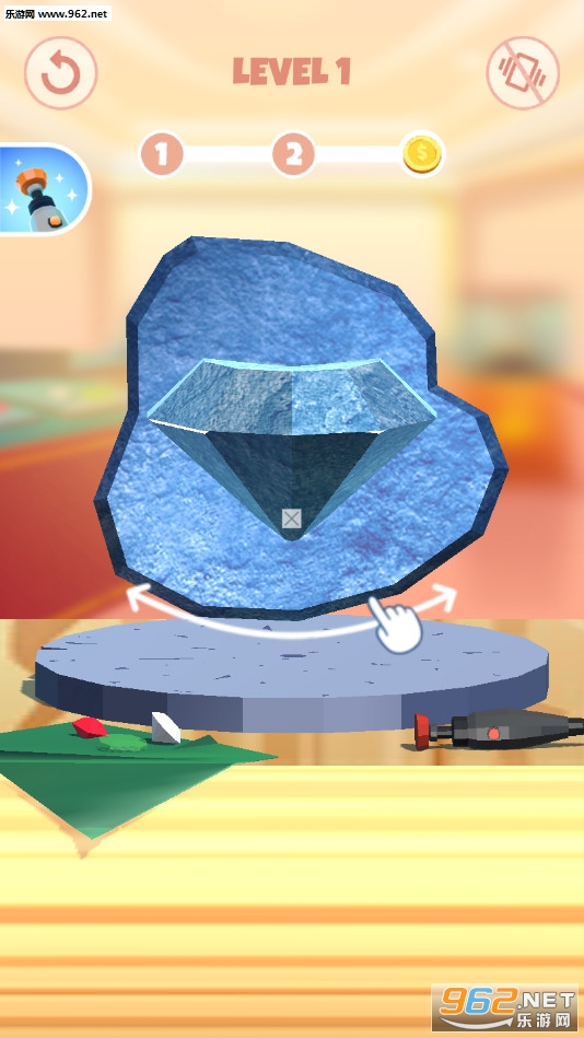 趣味的切割钻石的游戏,玩家需要通过两个程序来制作钻石,首先利用大工具粗糙的去除多余石料,然后利用小工具清理残渣,最后获得精美的大钻石。