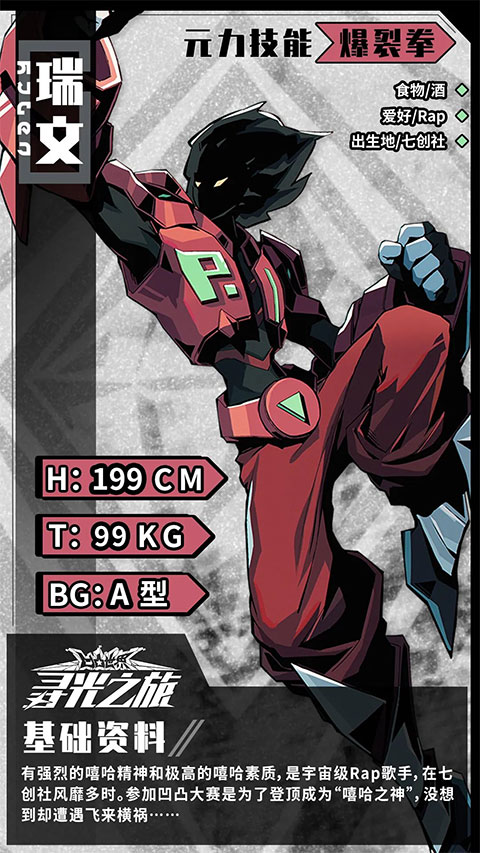瑞文,有强烈的嘻哈精神和极高的嘻哈素质,是宇宙级Rap歌手,在七创社风靡多时。参加凹凸大赛是为了登顶成为嘻哈之神”,没想到却遭遇飞来横祸。