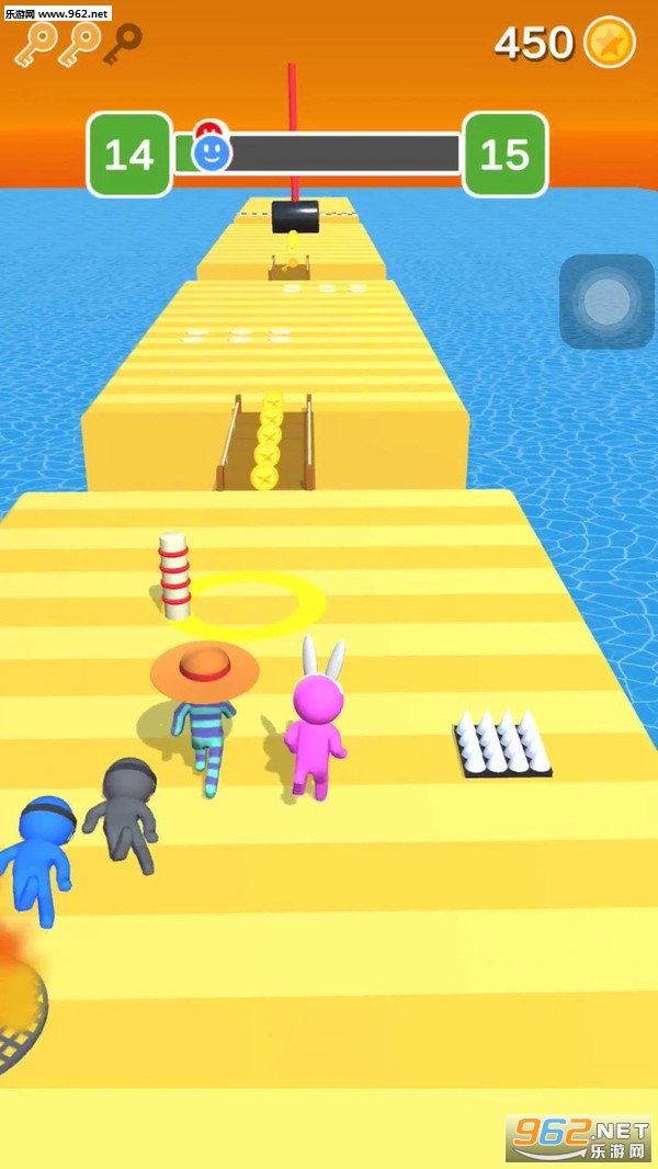 3、多人同时参加比赛,击败其他玩家并避免在同一场比赛中遇到障碍并完成比赛。