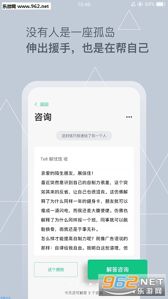 《tell app安卓》是一款可以让你放心倾诉展现自我的匿名社交平台,在这里你可以写下自己的烦恼和喜悦,也可以找到更多愿意和你说话和你沟通的朋友,交流的方式都是类似信件的方式,发布自己的内容让他人去倾听即可,感兴趣的亲们赶紧下载吧。