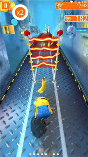 2、用手指向右滑动可以使小黄人避开障碍物。