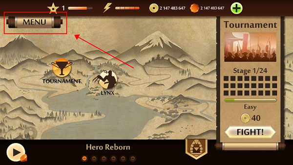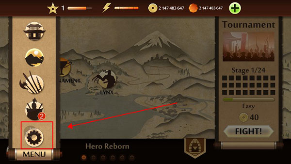 1、打开暗影格斗2游戏,首先点击菜单按钮