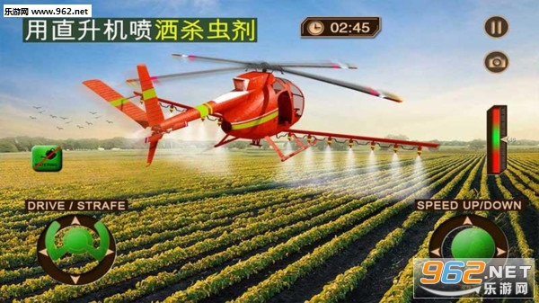 一款模拟使用无人机进行耕种的休闲模拟类游戏,现在大多数农田采用的是现代化种植,现代化种植农田不仅效率高产量也高,现在又投入了最新的现代化耕种设备,使用无人机耕种,驾驶无人机在空中向农田撒种,并且还能空中浇水施肥,当幼苗长出来之后,又可以使用无人机洒杀虫剂。