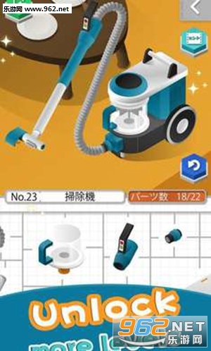 《家居组装游戏》(Home Assemble)是一款画面清新的将物品拼接起来的闯关休闲手游,游戏中有着众多的物品可以挑战,玩家的任务就是将一些小零件一个接一个的拼接在一起,最后组成一个完成的物品,比如可以拼接一个吸尘器、火车头、吉他、平衡车等。