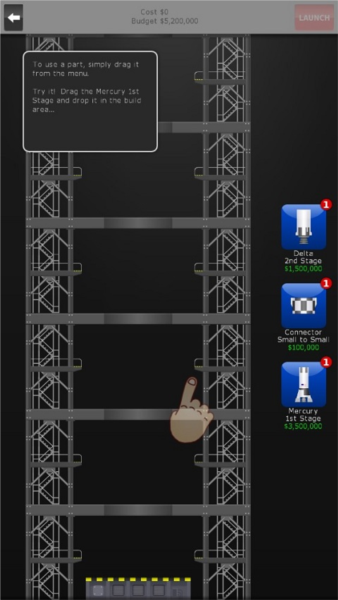 1、在建筑界面,顶部有费用的具体数值,玩家需在有限预算内完成火箭的建造。首先选择火箭的主体,如图: