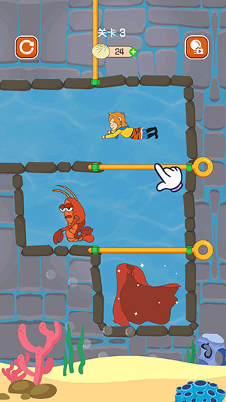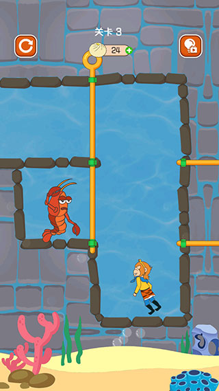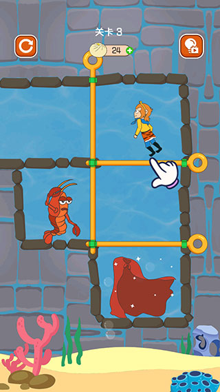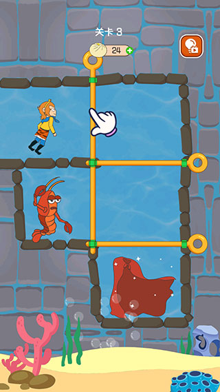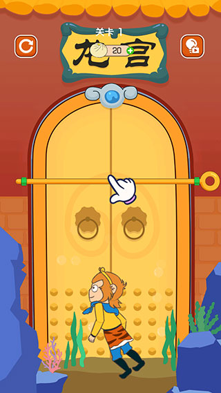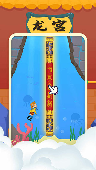 5、第三关拉动竖向机关后,龙虾和孙悟空都会同步移动。