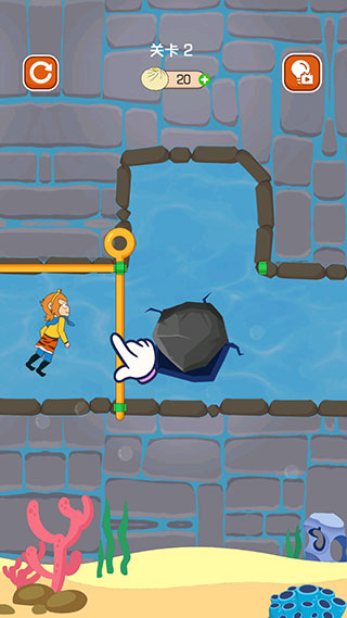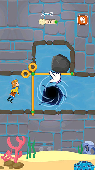3、第二关需要先拉动横向机关,使石块落下封住危险洞口。