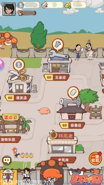 4、不同类型的建筑可以产出不同类型的资源,理发店可以产出银币,银币可以用于建设老屋、升级宠物、升级藏品等。五金店可以产出螺丝,可以用于升级城寨中的建筑。桑蚕店可以产出蚕蛹,蚕蛹可以在桑蚕店内进行制衣,可以获得伙伴使用的武器和衣服。展览馆可以产出阅历,阅历可以用来升级藏品,获得更多的属性值。