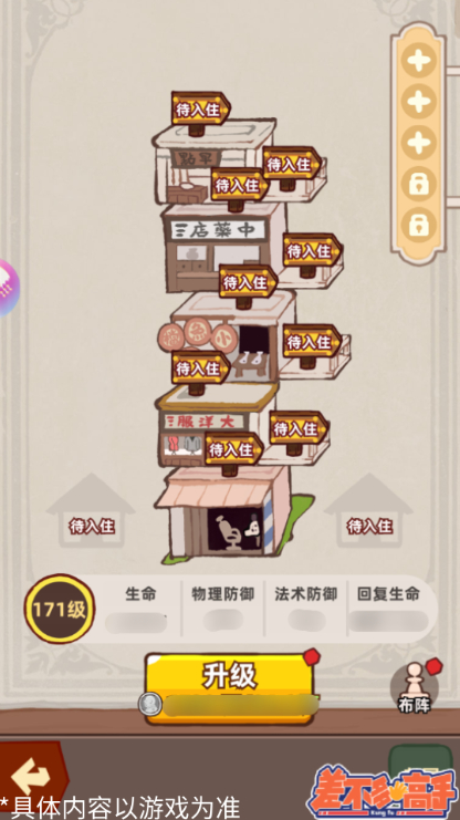 1、在城寨中点击老屋可以进入建设老屋,使用银币即可对老屋进行升级,升级后老屋会获得更高的属性加成;达到一定等级后,需要使用指定的砖头道具进行突破。