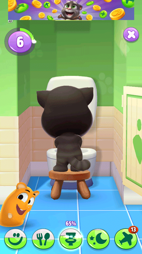 6、如果汤姆猫吃多了需要上厕所,只需轻点浴室马桶,它就会自觉前往解决啦。