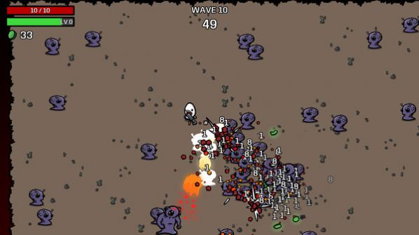 前期属性选择近战伤害、移速、收获,徒手武器的15%+人物自带15%闪避,因为拳类武器击退高,如果伤害不够很容易堆怪,导致暴毙。