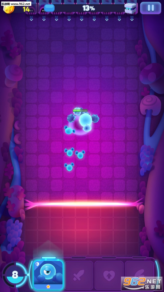 通过不断闯关来获得奖励,升级细胞,提高细胞们的炮弹威力和速度。
