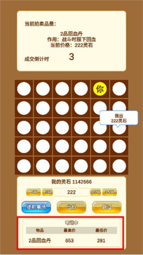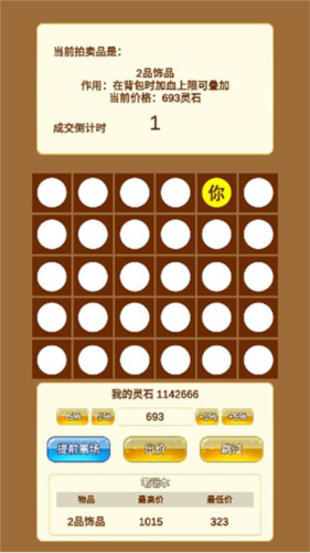 游戏中的敌人强度与你的资产直接挂钩。初期建议将总资产控制在1万灵石以内,以练气前期身份安全发育,同时备好基础武器或一次性丹药以防意外战斗。进入低级拍卖场时,百元以下物品可直接跳过;出价时采用连续加价1%”策略,往往能吓退竞争者,低价捡漏。