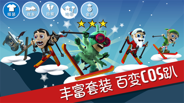 在游戏中,不仅可以挑战夺命竞速,还可以滑动屏幕作出特技动作!根据单、双板和坐骑的不同,特技动作也会发生改变!向前、向后、向上、向下赶紧试试吧!