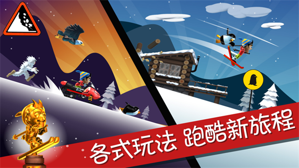 滑雪大冒险折相思内置菜单版是一款以滑雪为题材的另类休闲跑酷手游,我们的玩家可以在这款游戏里和雪崩灾难竞速,从而成功逃脱。而且你还可以在滑雪大冒险折相思内置菜单版里选择唐僧、白骨精、兵马俑、忍者等多个小伙伴,从而帮你逃离险境。