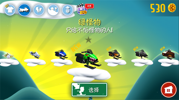 雪地摩托也有多种,小编就不一一列举了,这里跟大家说下游戏滑雪中尽量骑上遇到的动物身上,有企鹅、摩托、雪怪等,有了坐骑之后滑动速度会加快,这样就可以快速躲避雪地崩塌了,要想获得高分还需要尽力获得金币。
