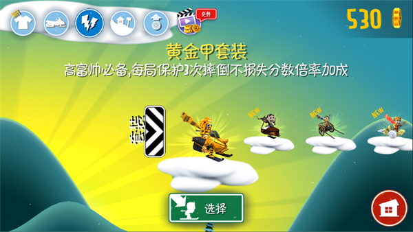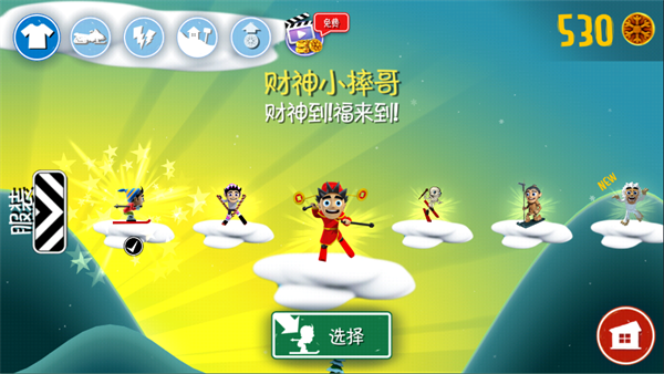滑雪大冒险10周年纪念版中新加了人物角色,小摔哥、周年小摔哥)、财神小摔哥。不同的人物形象不一样,另外玩家们可以收集金币去买人物装饰哦!这个也是和前作一样的。