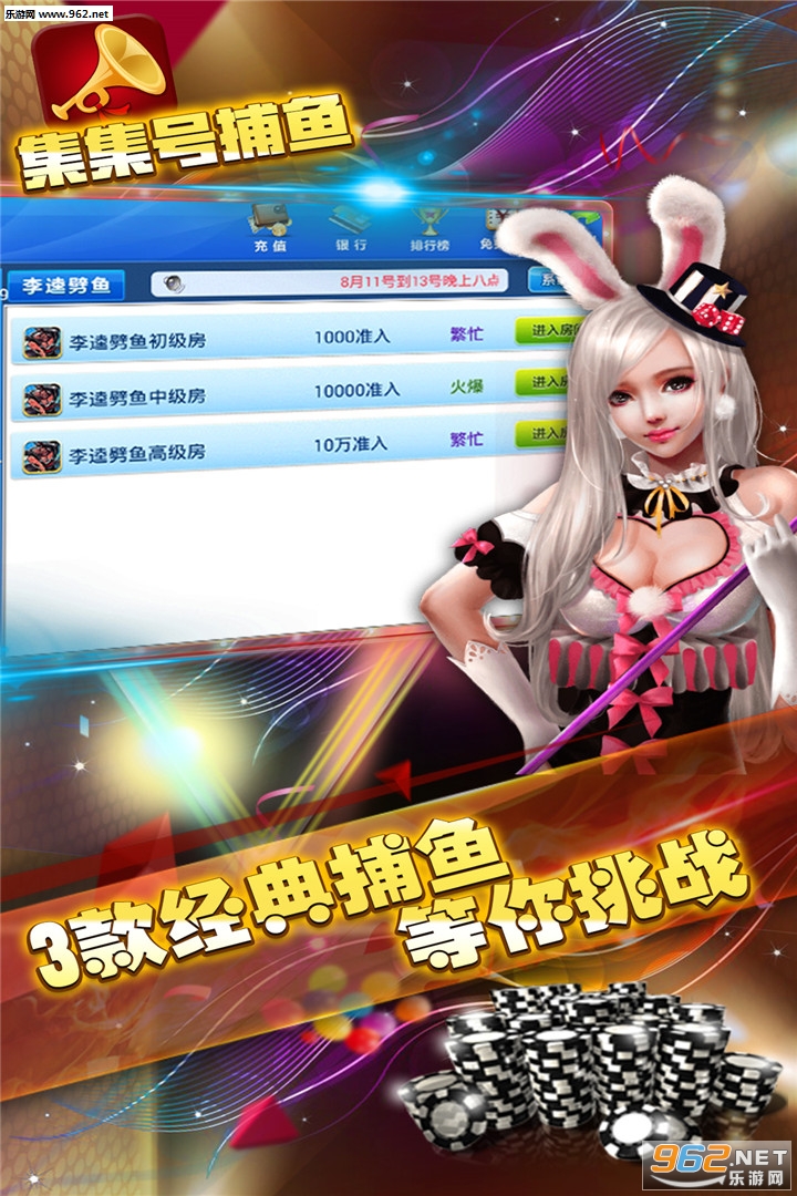 一款非常给力的掌上捕鱼类手游,简单的游戏玩法,刺激的街机捕鱼游戏,每天都有大额红包等你来拿,感兴趣快来962下载吧!