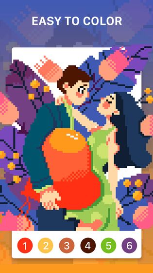 3.尽情的享受这个愉快的像素画画游戏,在这款游戏中不同的像素画作需要用不同的颜色进行上色。