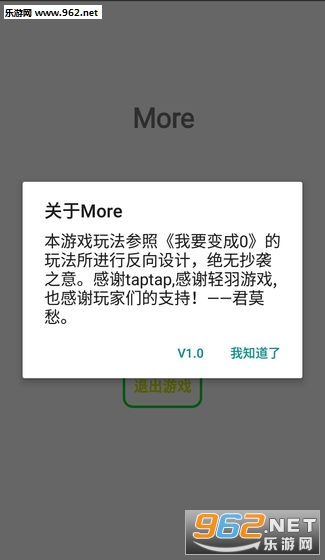 《More安卓版》是以我要变成0为灵感设计的反向风格的休闲小游戏,其旨在帮助玩家打发无聊时间,简约的风格,轻松的游戏模式,即开即玩,毫无后顾之忧,还可以顺便练练手速,还在担心抢不到红包,来这里帮你锻炼手速。