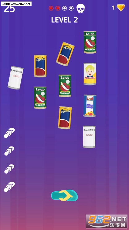 《罐头挑战安卓版》是一款休闲敏捷闯关游戏,游戏的玩法很简单,用你的拖鞋去砸那些罐头,这些罐头在你的眼前飞舞,特别犯人,将你的拖鞋扔出去,砸中那些罐头,拖鞋的数量是有限的,你需要在拖鞋用完之前将所有的罐头击中,砸烂它们。