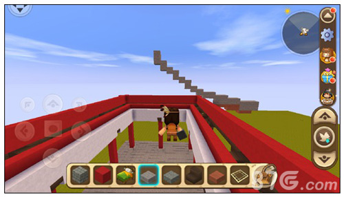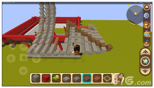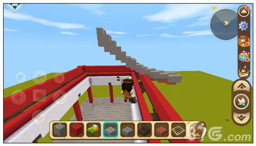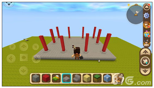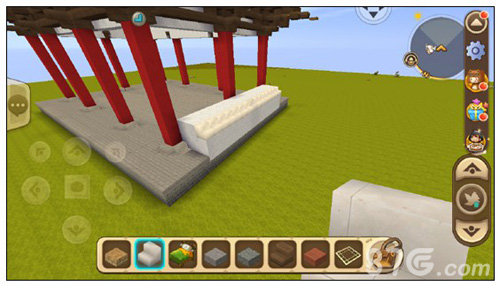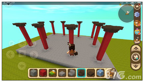 在柱子最底下一格旁边围上四个楼梯,并在台基上面铺一层石砖台阶,把柱子整体抬高一格。