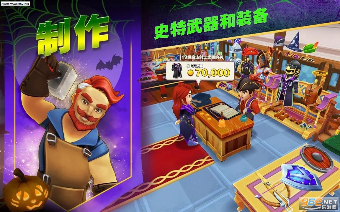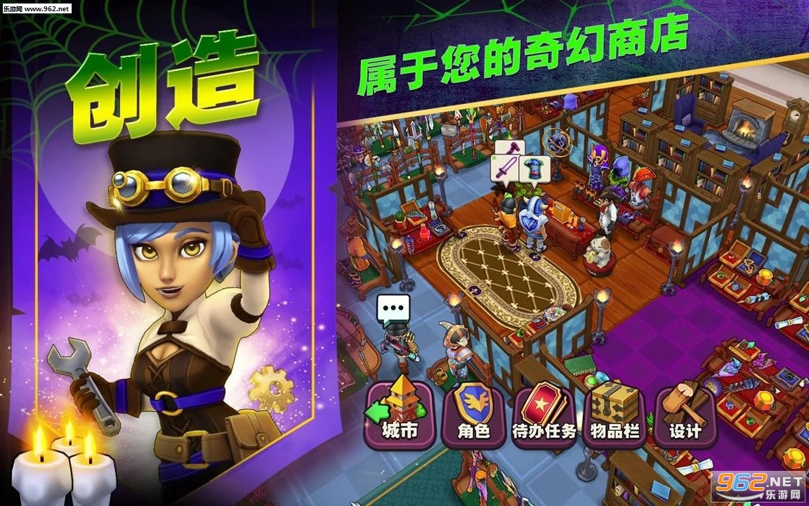 踏上一段建造与自定义一间蓬勃发展的商店的冒险之旅…完全以3D的方式呈现!通过制作史特武器与装备来赚取奖励,成为大亨。招募和装备英雄来完成任务以及挑战传奇头目。与好友建立团队来管理一个生机勃勃的城镇,以及聘请工匠,例如铁匠、裁缝师、木匠,或药剂师。为货品定价、附加额外费用,或选择直接拒绝交易!您可交易、售卖或是把您的物品拍卖给该土地上最高的投标者!