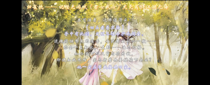 《只愿君心似我心》是一款清新简约风格的休闲解谜游戏,游戏中玩家将来到古代进行一系列的选择,你将遇到各种各样的谜题,在如同画卷的世界中进行游览,解开各种各样的谜题,游戏的操作简单容易上手,还有着有趣的剧情等待你的解锁,赶快下载体验吧!
