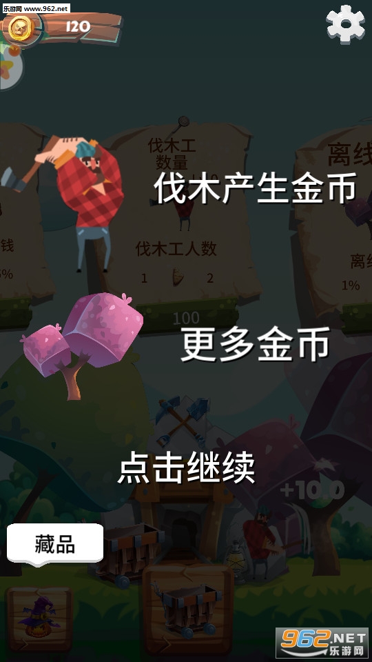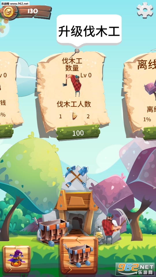 1、玩家可以升级自己的斧头来提升砍树的效率,通过伐木就可以获得大量的金币;