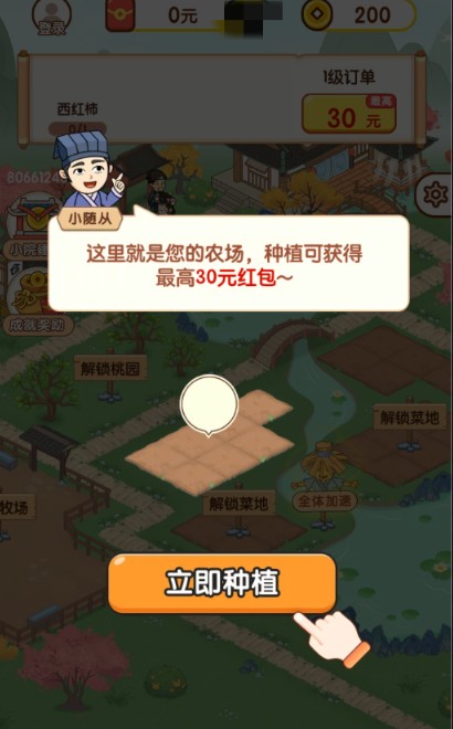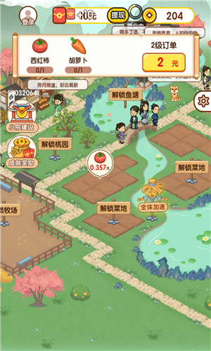 想要做订单解锁地块是第一步,然后记得开启全体加速功能。『作物升级』可以增加作物产量,长玩的必升。