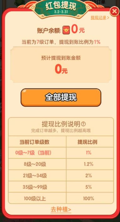 双奖励,储蓄金玩法,红包是按百分之一比例提现的。