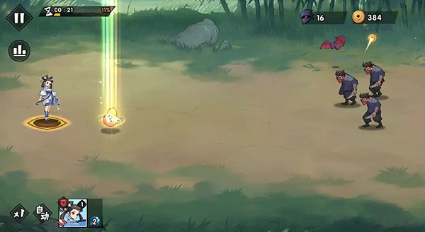 4、第2个侠客伙伴的召唤选择也比较关键,选择什么侠客则视战场情况而定:如果频频有小怪近身打乱输出节奏,可出[力];如果敌方人数太多,输出清不过来,则优先出气”或剑”。