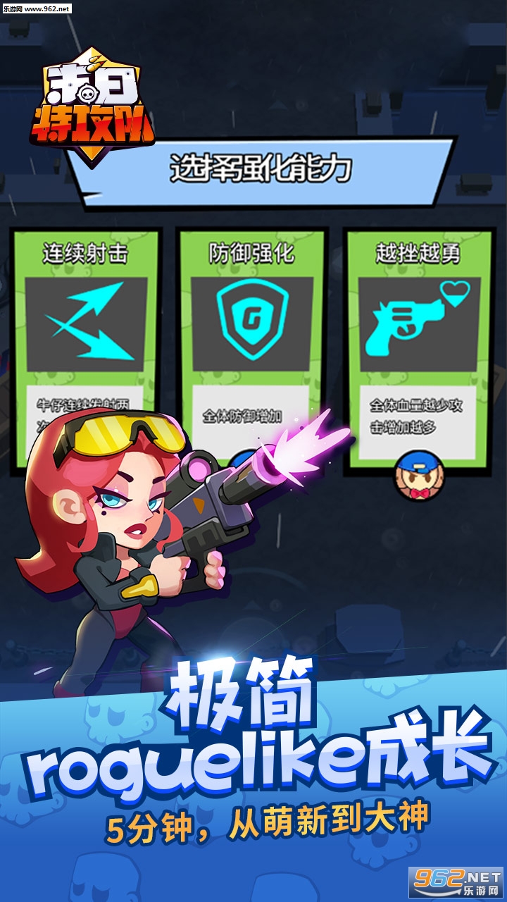 《末日特攻队》单手就能爽的轻休闲动作射击手游。Z病毒爆发席卷全球,丧尸狂潮侵袭,末日生存危机之下,组建特攻战队,进入丧尸占领区域,击败丧尸、拯救其他幸存者!被营救的幸存者,将成为特攻队新成员,随着搜救的不断推进,还能获取不同的新技能,roguelike生存闯关随机探索、极简操作割草丧尸,让更多幸存者加入末日特攻队,面对无尽丧尸,尽你所能让大家一起活下去吧!