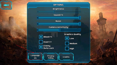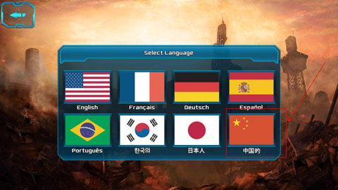 安装游戏,首次进入游戏后,请打开选项Option”,在点击Language”语言栏,如下图箭头所示。