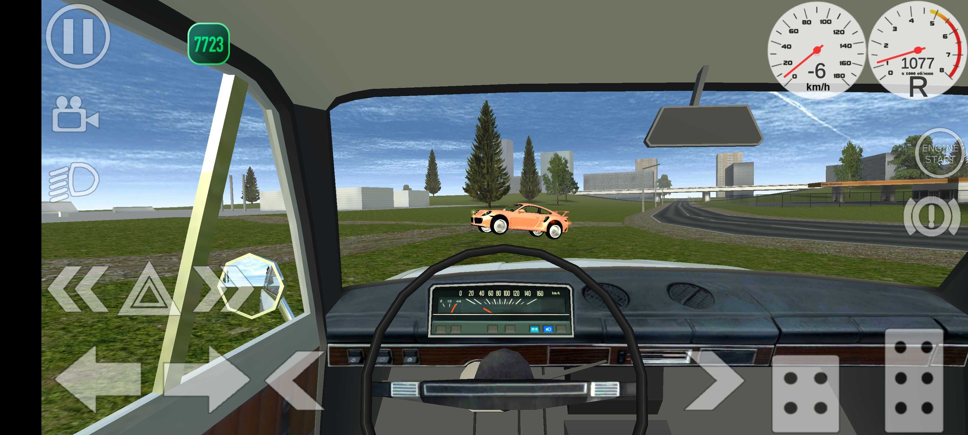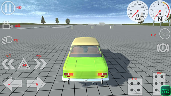 3、进入到驾驶场景当中了,包括录像、大灯、转向灯、启动等按键,我们可以通过左下角的左右控制车辆移动的方向,通过右下角【刹车】后退和【油门】前进按钮来控制车辆的速度。