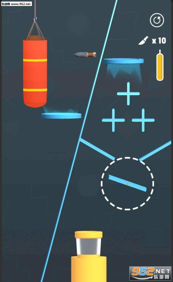 《我穿沙袋贼6 Fill it Sand》是一个趣味的游戏,玩家在这里将这些刀飞出去,让这些沙袋里面的沙都掉出来,很有趣的游戏,掌握好角度,让这些沙袋都被刺穿。